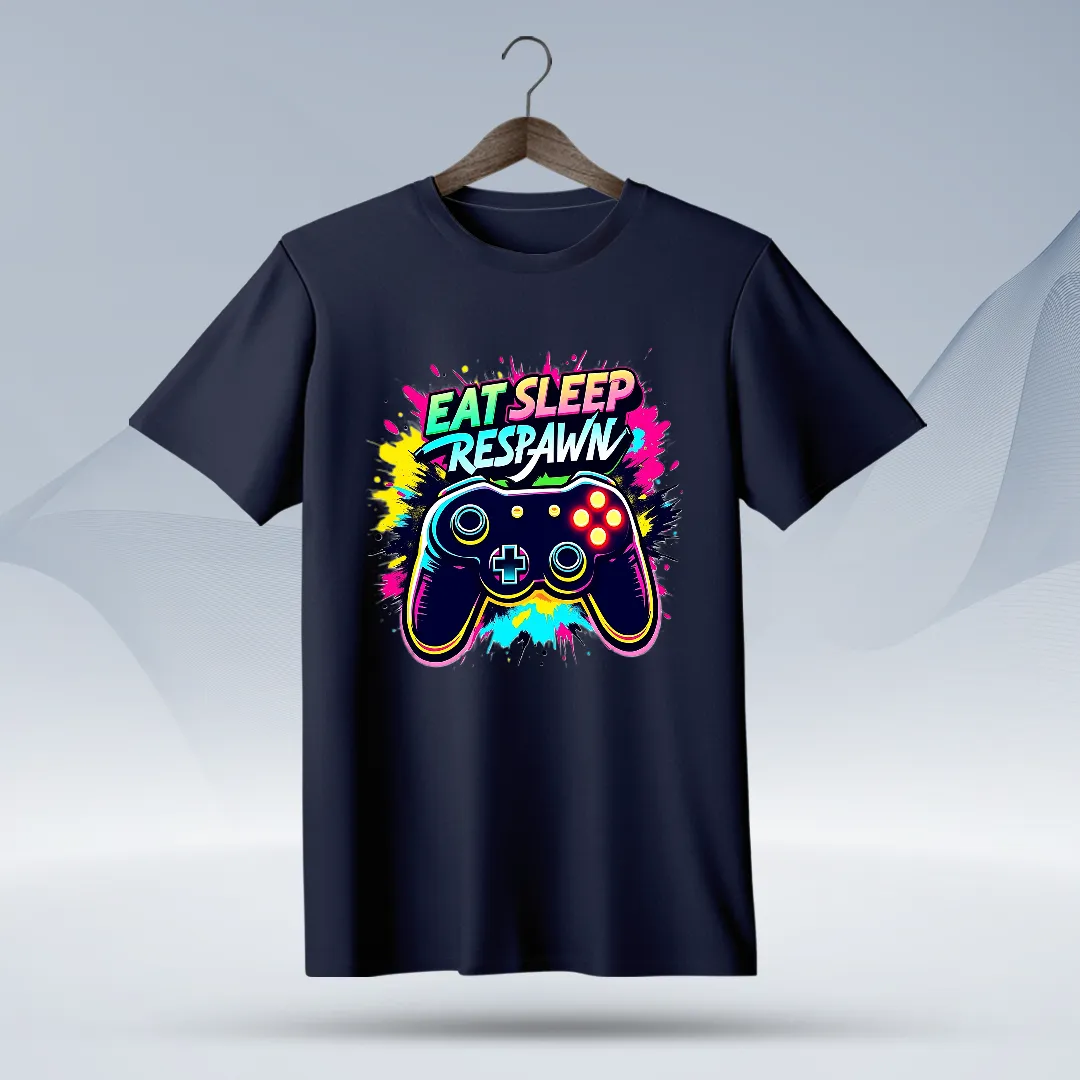 Bold Graphic Design: The T-shirt features a bold and playful graphic that highlights the “Eat Sleep Respawn” theme, making it a standout piece in any wardrobe.